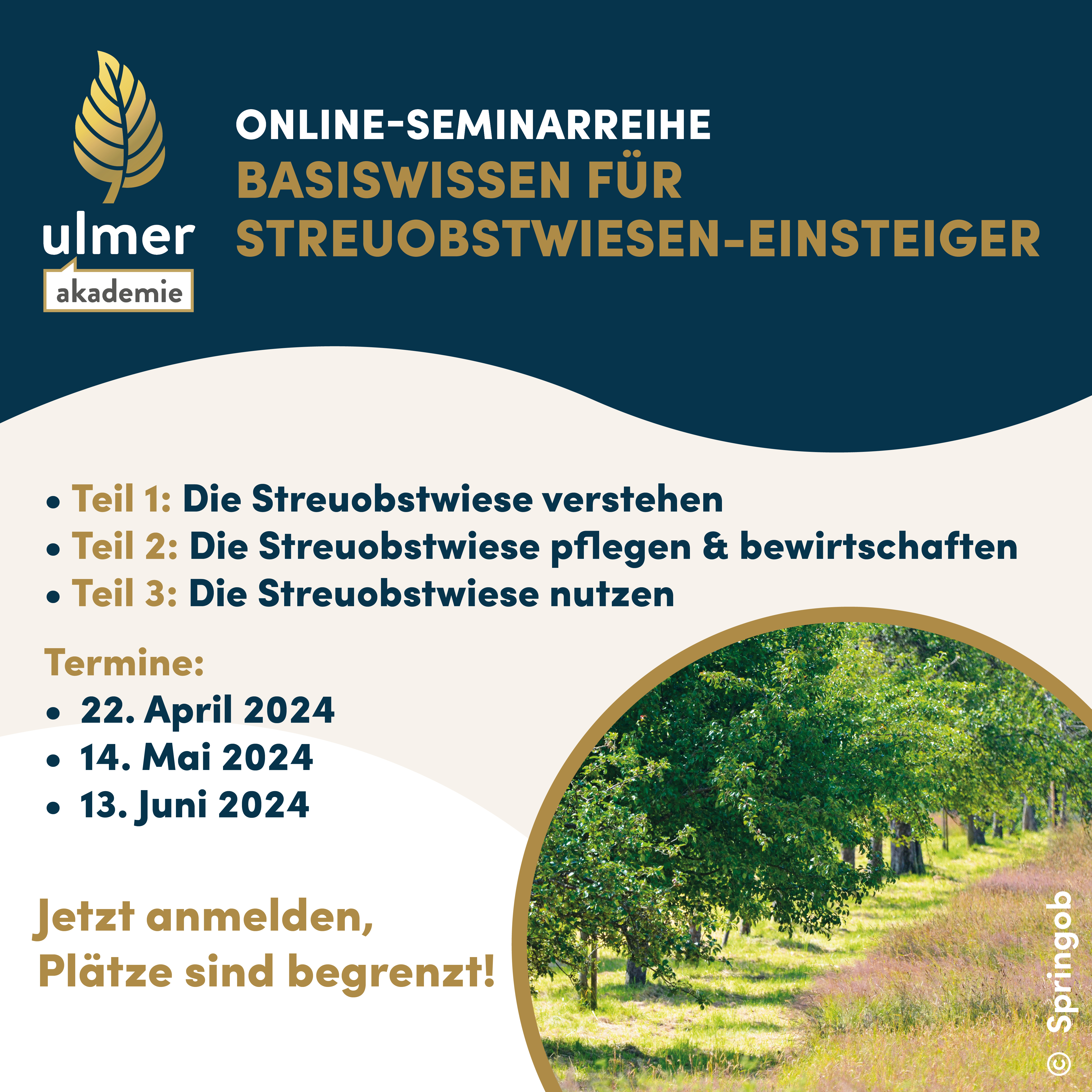 In der Online-Seminarreihe „Basiswissen für Streuobstwiesen-Einsteiger“ finden Interessierte alle Infos, um erfolgreich mit der eigenen Streuobstwiese durchzustarten. Aber auch für gestandene Streuobst-Fachfrauen und -männer hält die Online-Seminare hilfreiche Tipps und Austauschmöglichkeiten bereit.