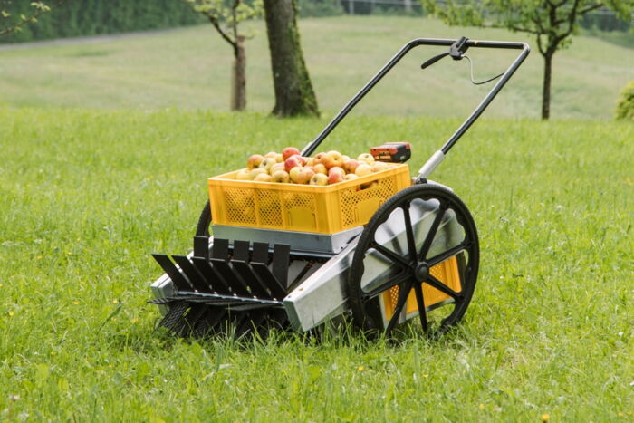 Die Obstraupe ist kein Schädling, sondern ein nützliches Erntewerkzeug: ein Obstsammelgerät mit Akkuantrieb für die Ernte von Verarbeitungsobst und Nüssen, insbesondere entwickelt für die vielfältigen Anforderungen beim Einsatz in Streuobstwiesen. Auch auf unebenem Gelände mit Mäuselöchern sammelt die Obstraupe verschiedenste Obstarten wie Nüsse, Zwetschgen, Birnen und Äpfel, bis zu einer Tonne Obst innerhalb einer Stunde. Ein Trennsystem verhindert, dass Laub und Grasreste mit aufgesammelt werden. Das 33 kg leichte Gerät mit Edelstahlrahmen und 74 cm Räumbreite lässt sich flexibel auch in dichten Beständen oder Plantagen manövrieren und zusammengeklappt selbst im Kofferraum kompakter Fahrzeuge transportieren.